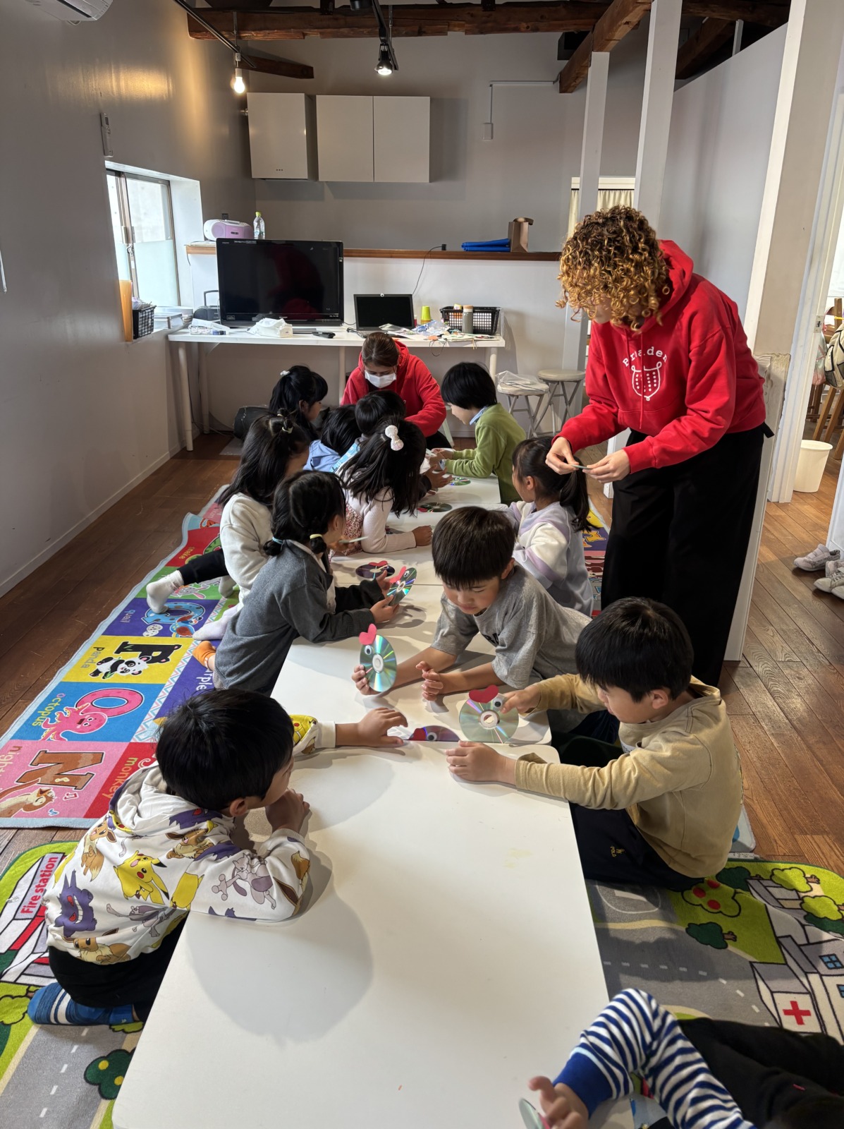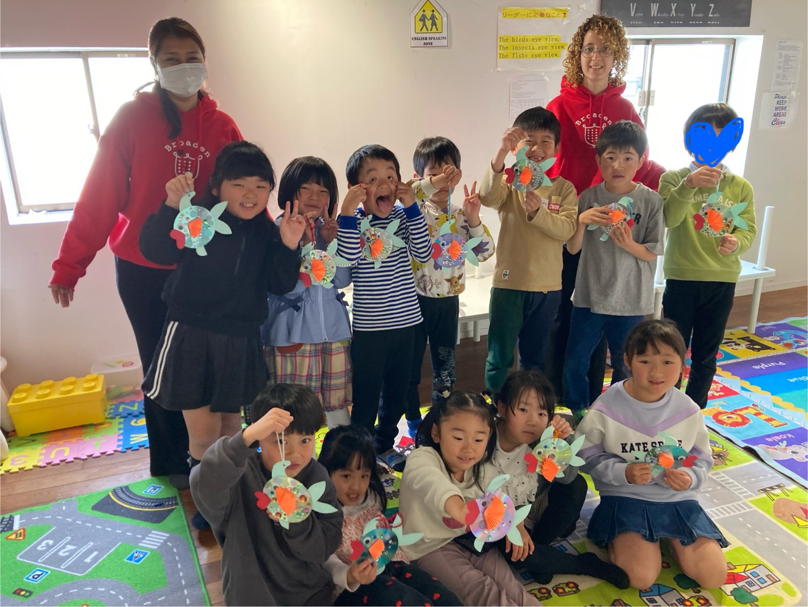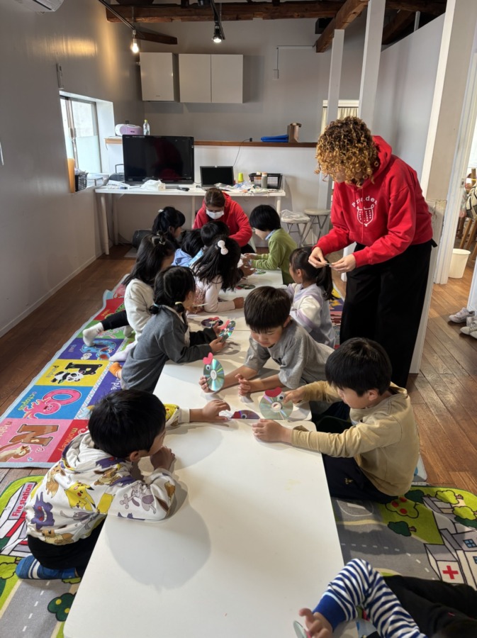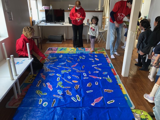 スプリングスクール2日目も元気いっぱいにスタートしました!テーマ “Water Creatures Adventure!” 「水の生きもの だいぼうけん」に沿って、今日は “淡水の生きもの” について楽しく学びました。川や湖にはどんな生きものがいるのかな?という問いから始まり、Daniel先生がスライドや動画を使ってわかりやすく紹介してくれました。海とは違う環境に住む魚やカメ、カエルなど、さまざまな生きものにみんな興味津々!淡水ならではの特徴や、生きものたちの工夫についても知ることができました。クラフトの時間には、CDを使って可愛い淡水魚づくりにチャレンジ♪ キラキラ光るCDを活かして、それぞれ工夫をこらした素敵な作品が完成しました。個性あふれる魚たちがたくさん並び、とてもにぎやかでした!アクティビティでは、魚釣りゲームを行いました!どの魚を釣ろうか狙いを定めて、みんな大盛り上がり♪ 夢中になって楽しむ姿がたくさん見られました。そして、いよいよ明日は岐阜の水族館へのお出かけです!本物の水の生きものたちに会えるのを、みんなとても楽しみにしています。明日も素敵な一日になりそうです😊!