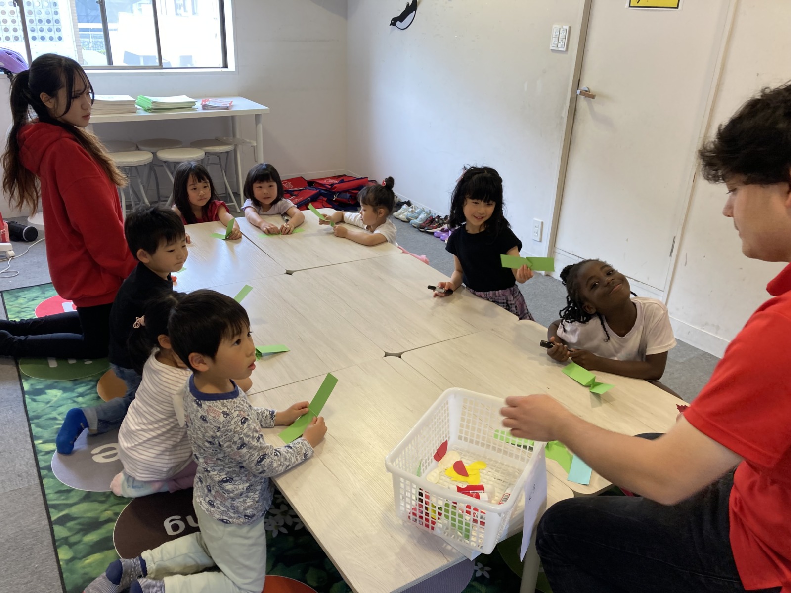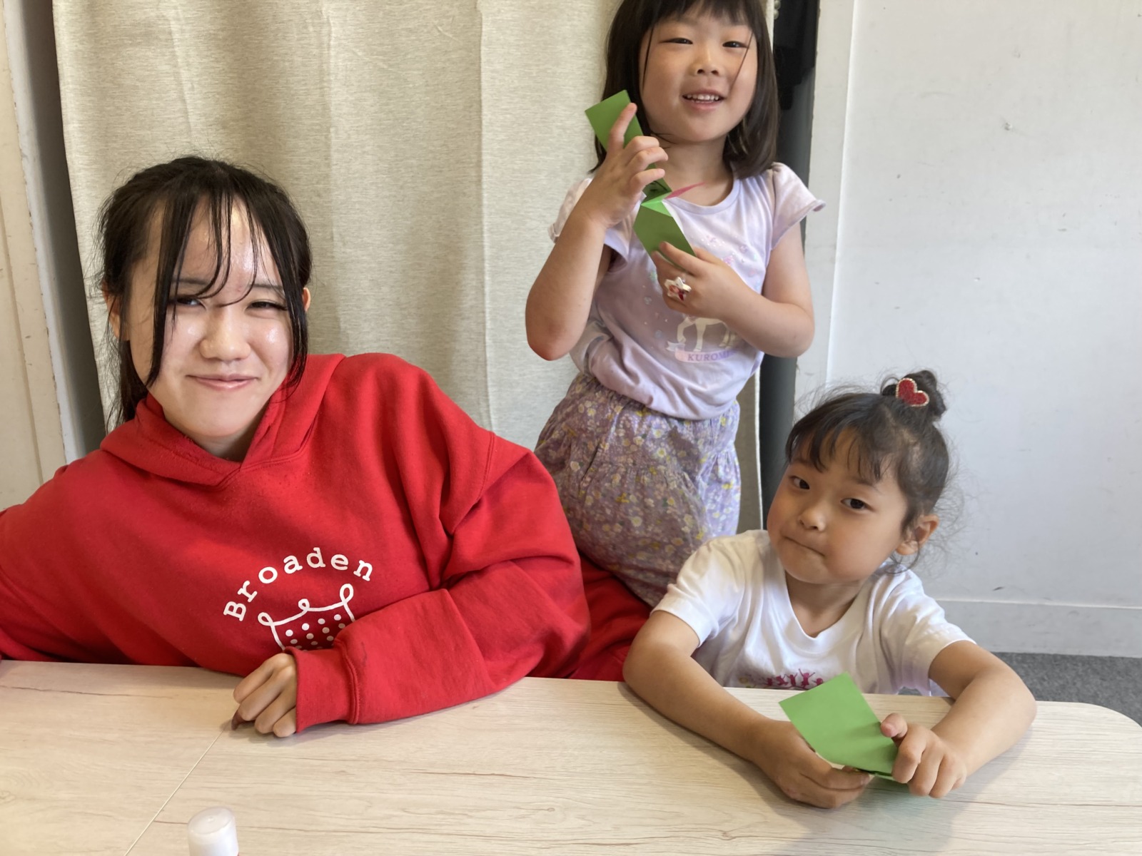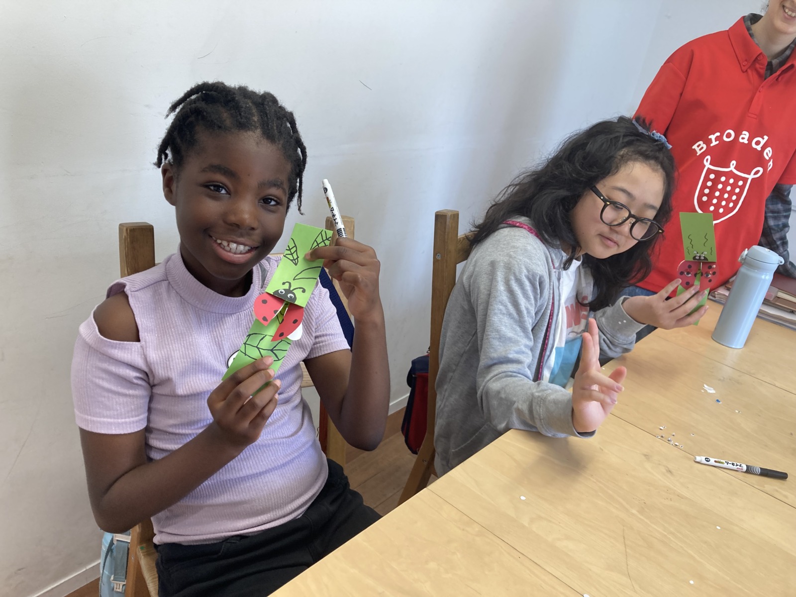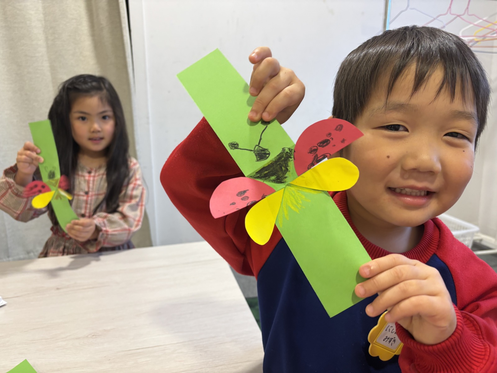 Blog 2026.04.25 Craft 今月のSPAはcraftレッスン! 画用紙と折り紙を使ってLady bugを作りました😁 折り方や貼る場所が少し難しかったですが、しっかり先生の英語での説明を聞いて作ることができました! 仕掛けがおもしろく、何度も引っ張って見せてくれましたよ❣ . ◀ ブログ一覧へ