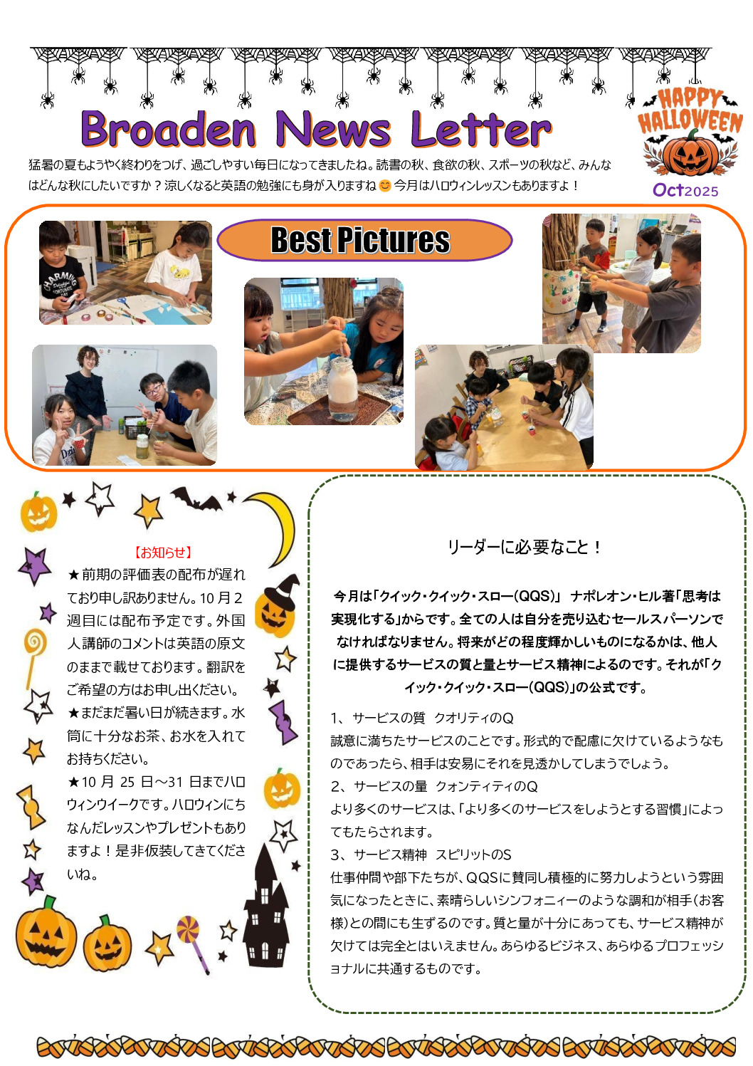 News 2025.10.11 News大事なお知らせ! 2025.10.01 News英語学院・インターナショナルスクールNewsletter Oct 一覧を見る Blog 2025.10.11 news今週のホームワーク10/21-10/25のホームワークです。 2025.10.04 10/07-10/11のホームワークです。week 23 一覧を見る